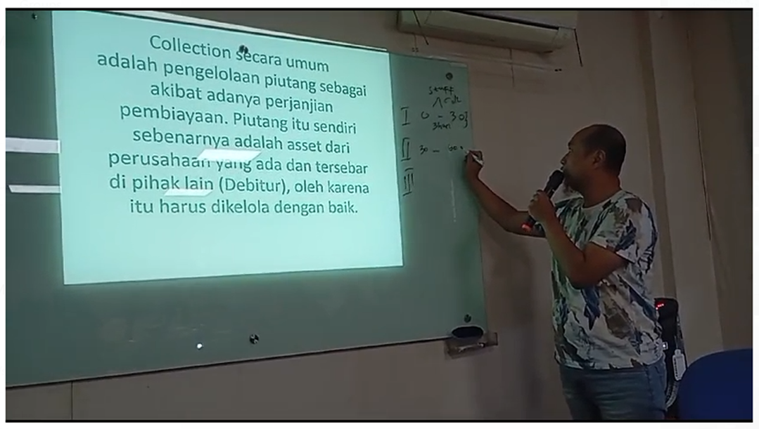 Karena ada pelatihan seru tentang Collection, lho! Dipandu langsung oleh Bapak Bayu, pelatihan ini memberikan pemahaman komprehensif tentang dunia Collection, dari pengertian dasar hingga strategi jitu mengelola piutang. Bapak Bayu dengan gayanya yang ramah dan mudah dipahami, menjelaskan seluk beluk Collection secara umum.